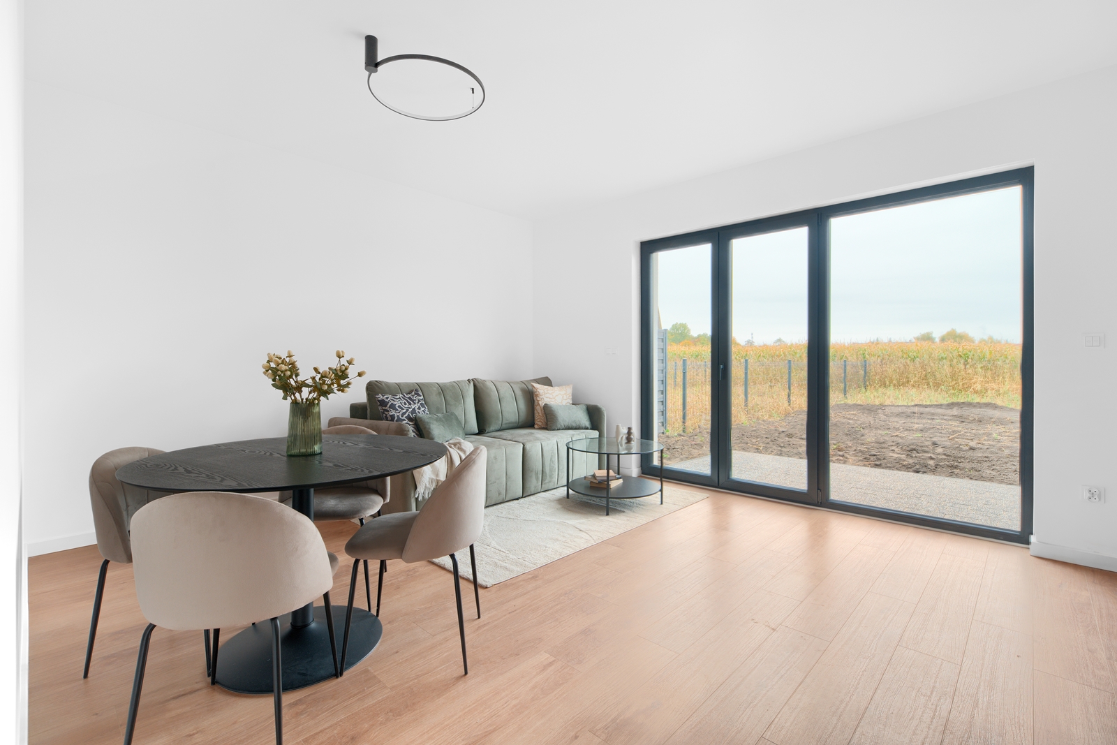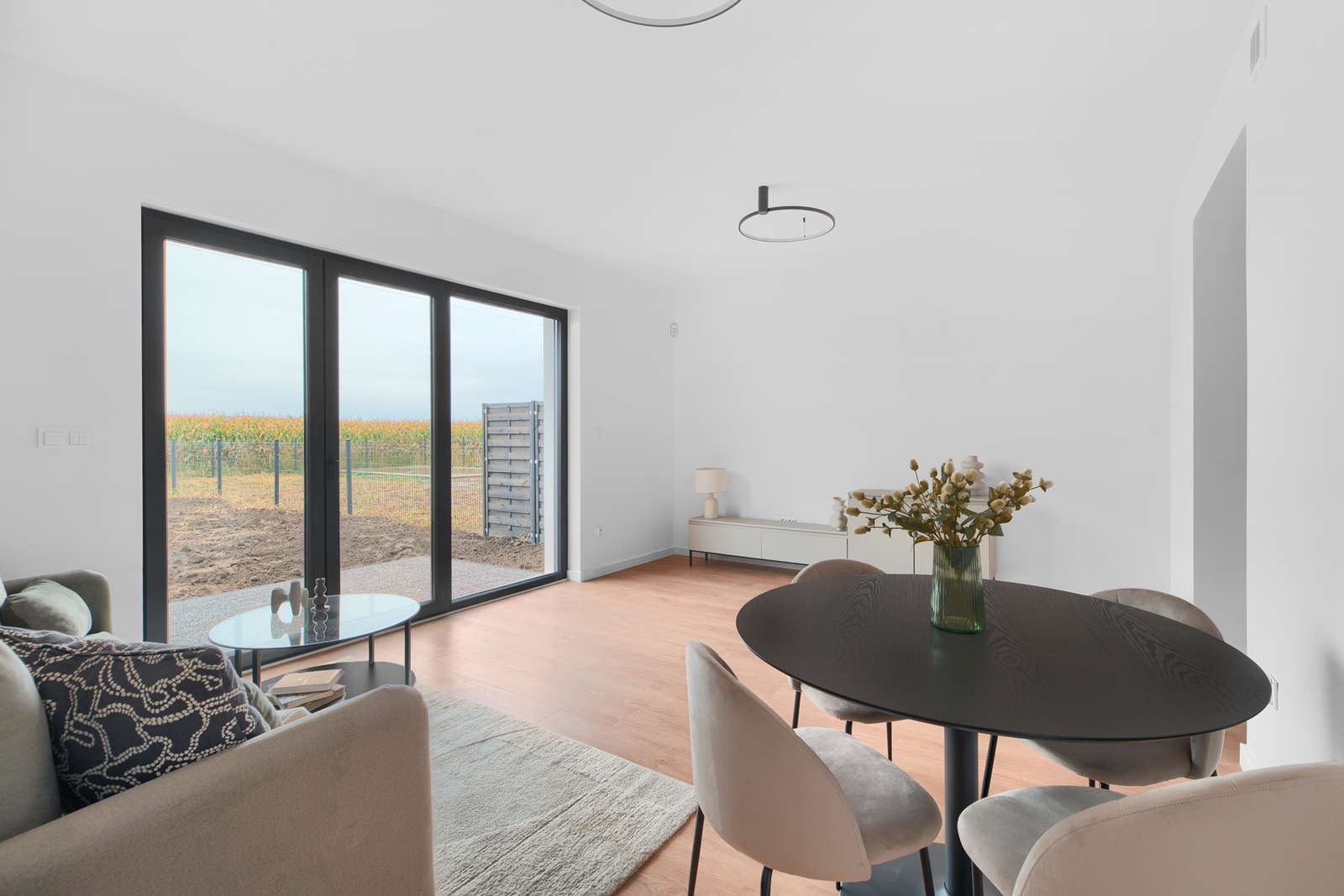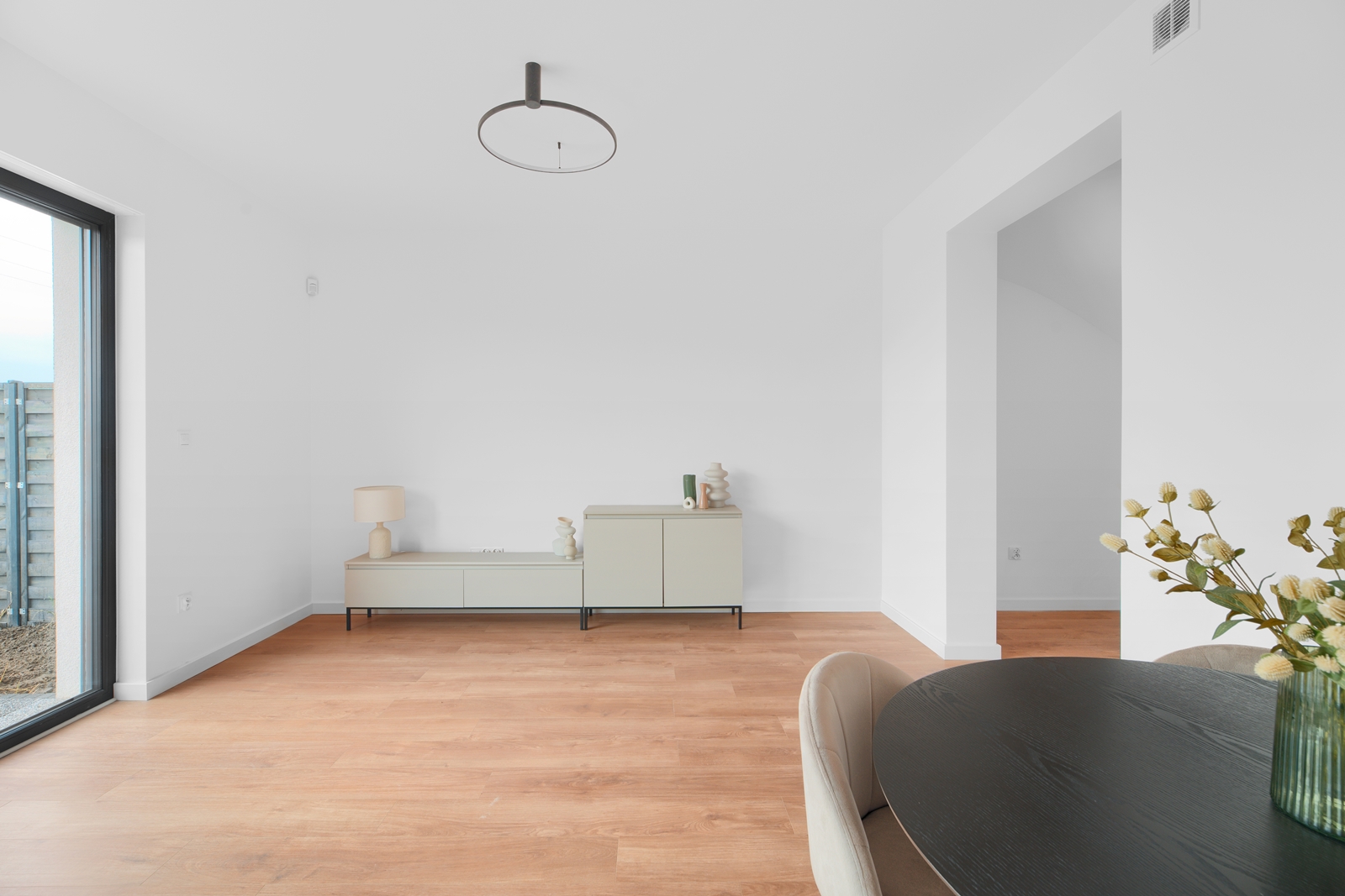 - Możliwość zamontowania kominka w salonie, wyprowadzony nawiew powietrza od strony ogrodu