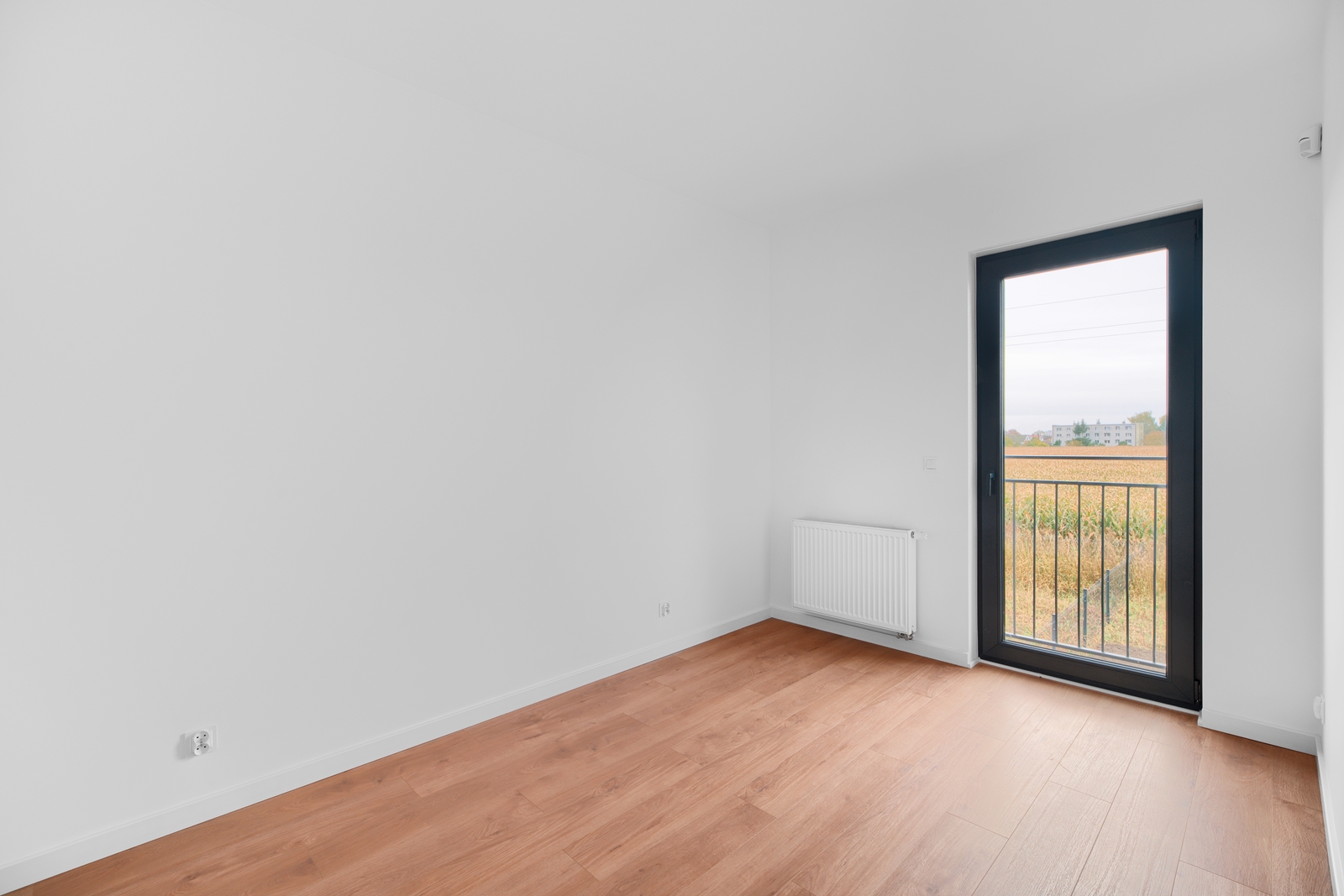 - Podłoże - wylewka cementowo – piaskowa, brak paneli, płytek oraz innego typu okładzin podłogowych wewnątrz budynku i na balkonie